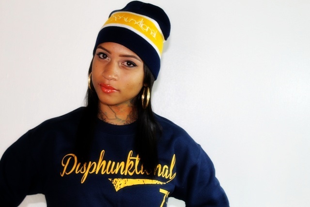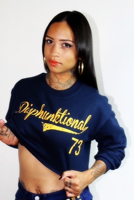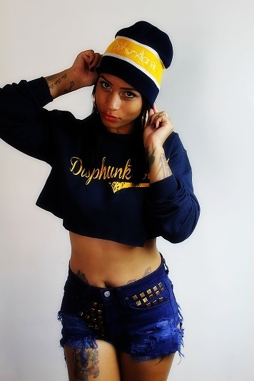 Navy Blue Crew Neck Sweater with Yellow/Gold writing