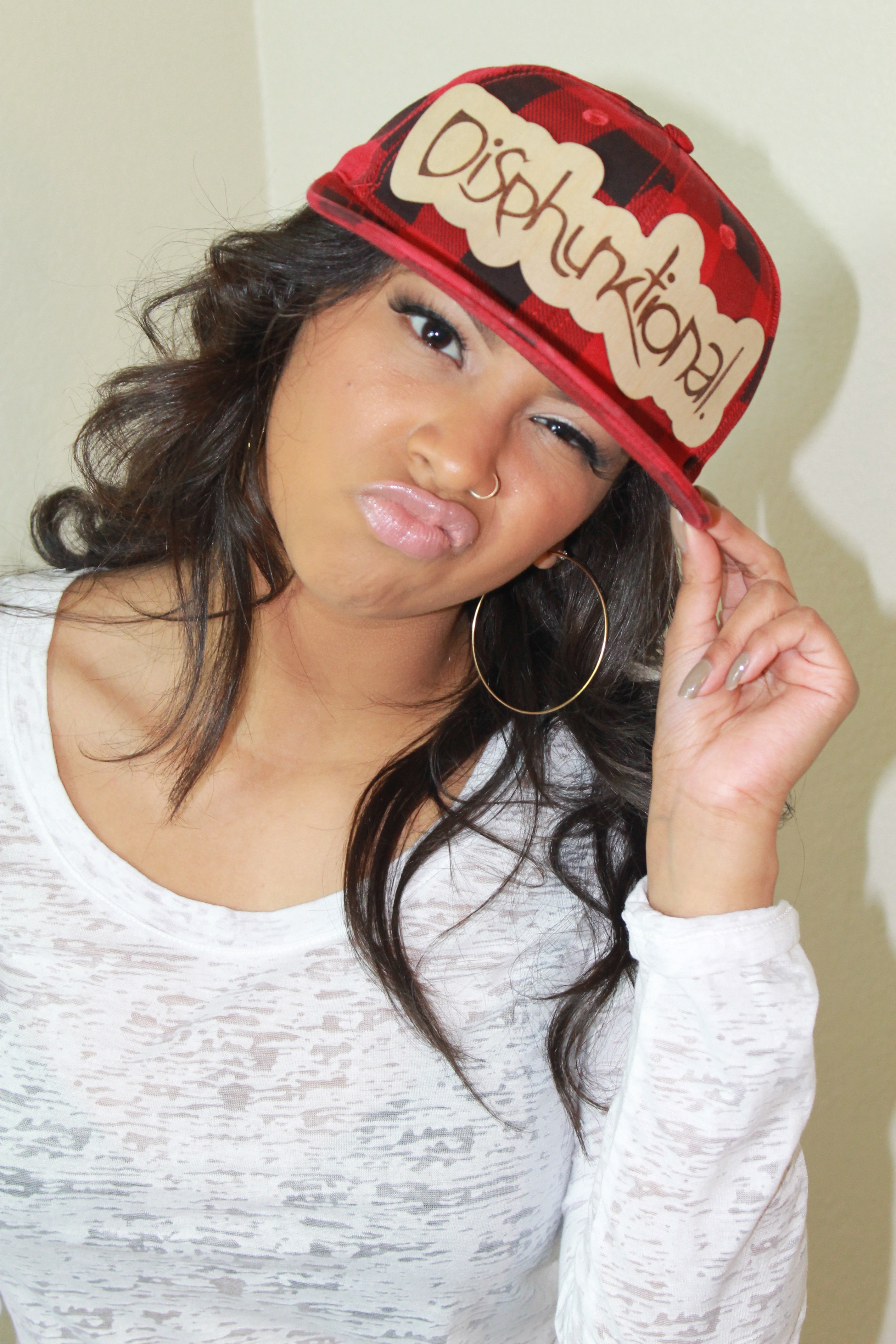 Black and red Plaid Disphunktional Hat with Custom Wood piece logo