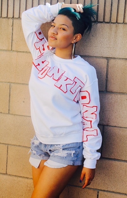 White Crew Neck w/ Overlaping Red and white Letters